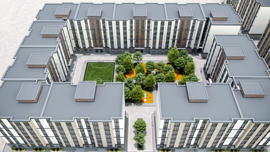 Безопасность превыше всего, поэтому будет закрытый большой двор с детскими площадками, а парковочные места вынесены за пределы двора и будут располагаться по периметру комплекса, чтобы жители чувствовали себя комфортно.
